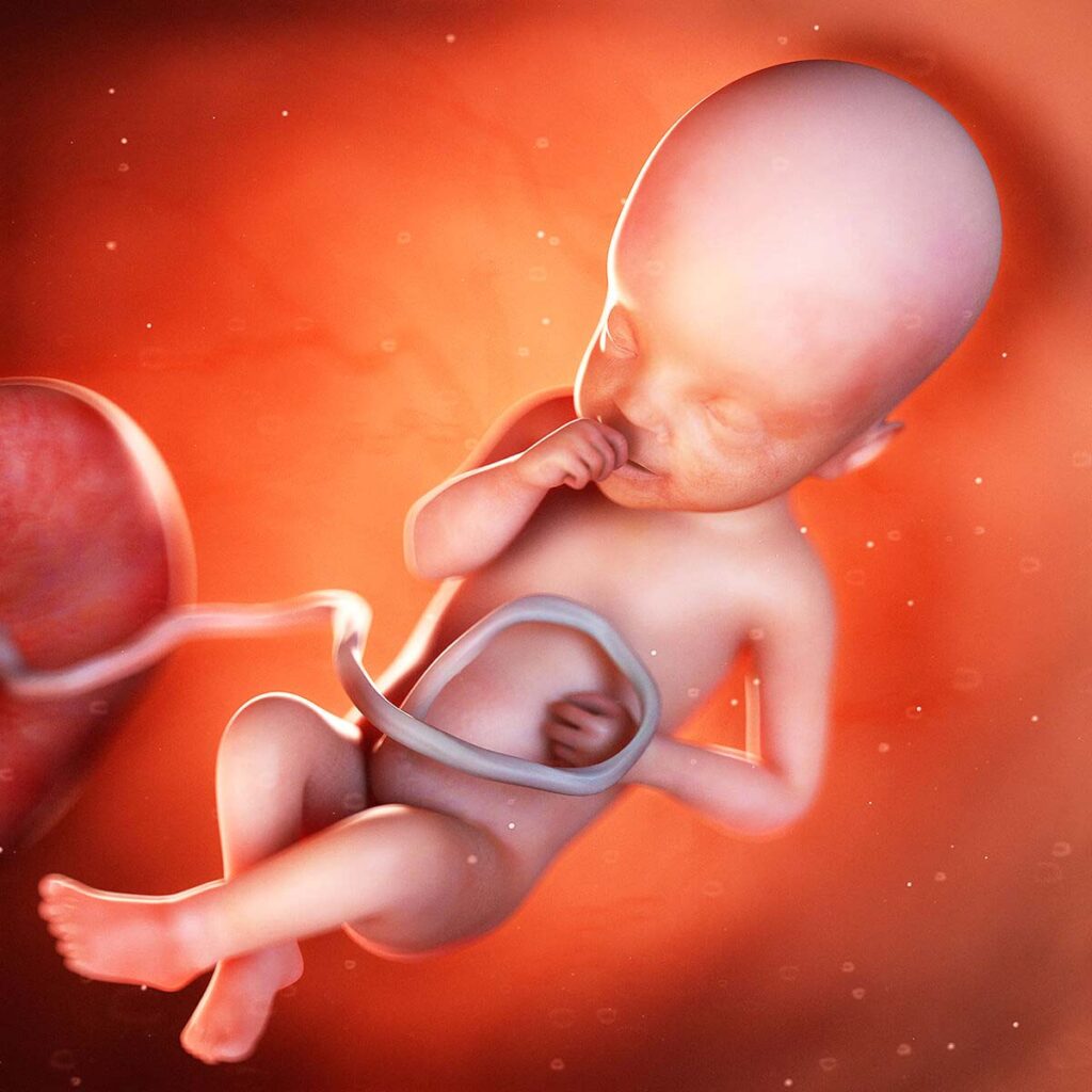 Thirty-three weeks into your pregnancy, or 31 weeks after conception, your baby’s pupils can change size in response to a stimulus caused by light. Your baby is around 43.7cm long from head to heel. That’s approximately the size of a pineapple. Your baby’s brain and nervous system are now fully developed. The bones are hardening up, apart from the skull bones, which will stay soft and separated until the baby’s around 12 to 18 months old.